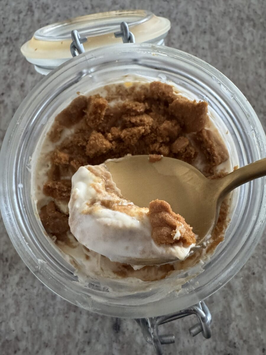 Dessa maneira, o biscoito atua como o elemento estruturante. Visto que o iogurte grego possui um alto teor de umidade, as bolachas “bebem” esse líquido, tornando-se uma massa macia, enquanto o iogurte se concentra e ganha corpo. Portanto, o resultado é uma sobremesa equilibrada, com as notas de canela do biscoito harmonizando perfeitamente com a acidez do iogurte.