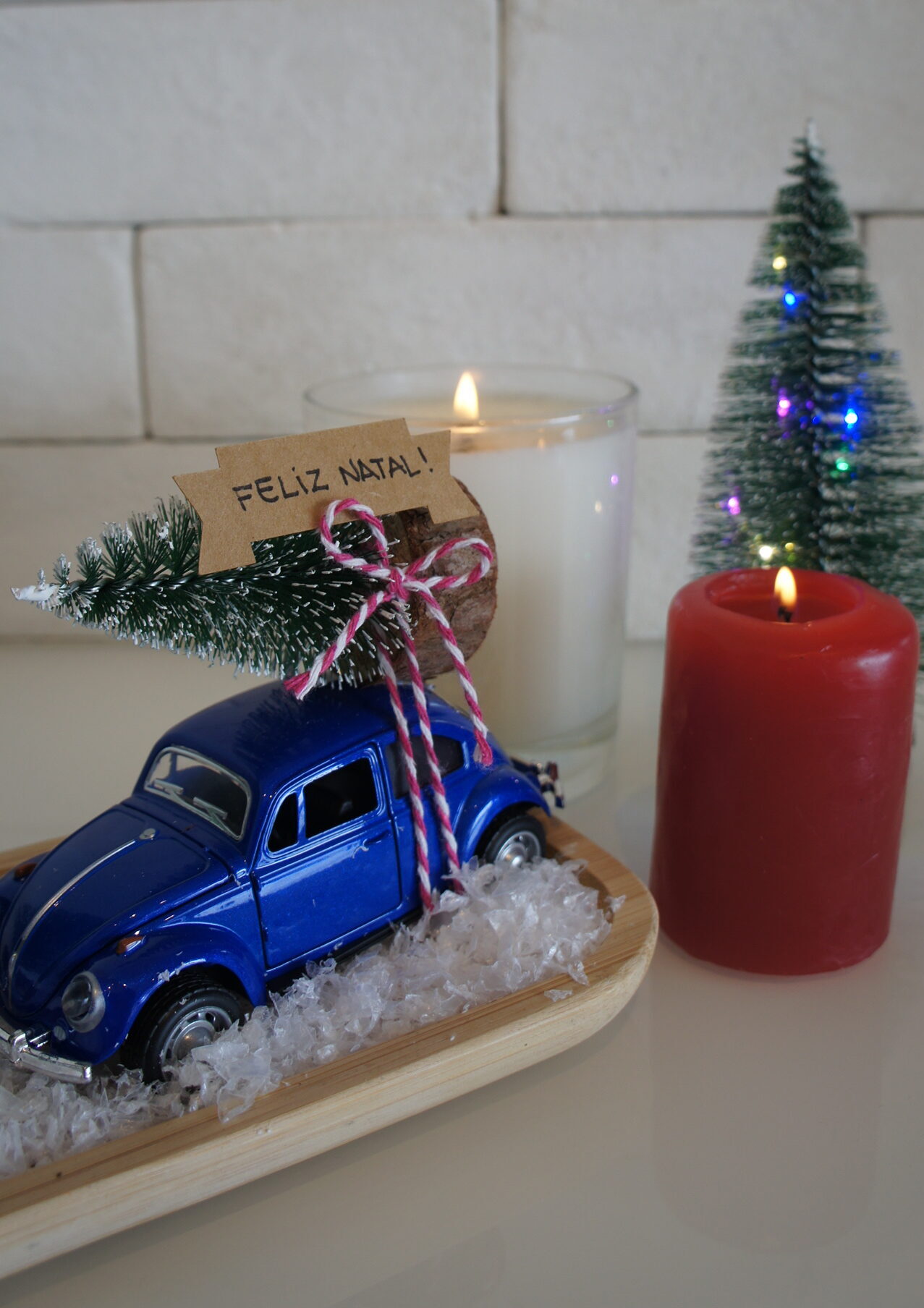 Se você ama a atmosfera retrô do Natal e procura um enfeite de Natal DIY que fuja do comum, o Fusca Natalino é a peça perfeita para a sua decoração! Inspirado no charme dos carros clássicos que carregam a árvore de Natal, este tutorial transforma um Fusca miniatura em um mini-cenário natalino, cheio de carinho e personalidade.