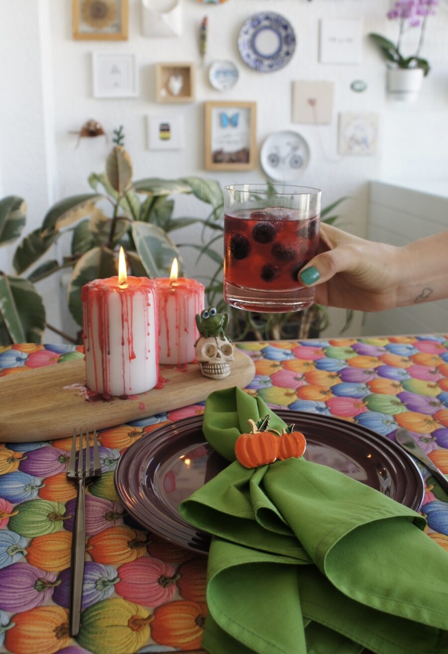 Essa combinação não só deixa a sua mesa impecável, mas também cria um cenário perfeito para o seu drink com Gelo de Olhos, garantindo que seus convidados se sintam imersos no clima de Halloween e queiram compartilhar cada detalhe.