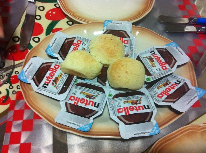 E foi assim que consegui encontrar no congelador um saco de pão de queijo congelado, pronto para ir ao forno. Mas o que pão de queijo resolve no alívio do nervosismo e do cansaço? Tudo. Se ele estiver recheado de creme de avelã com chocolate – mistura mundialmente conhecida como Nutella, amada e adorada por todos.